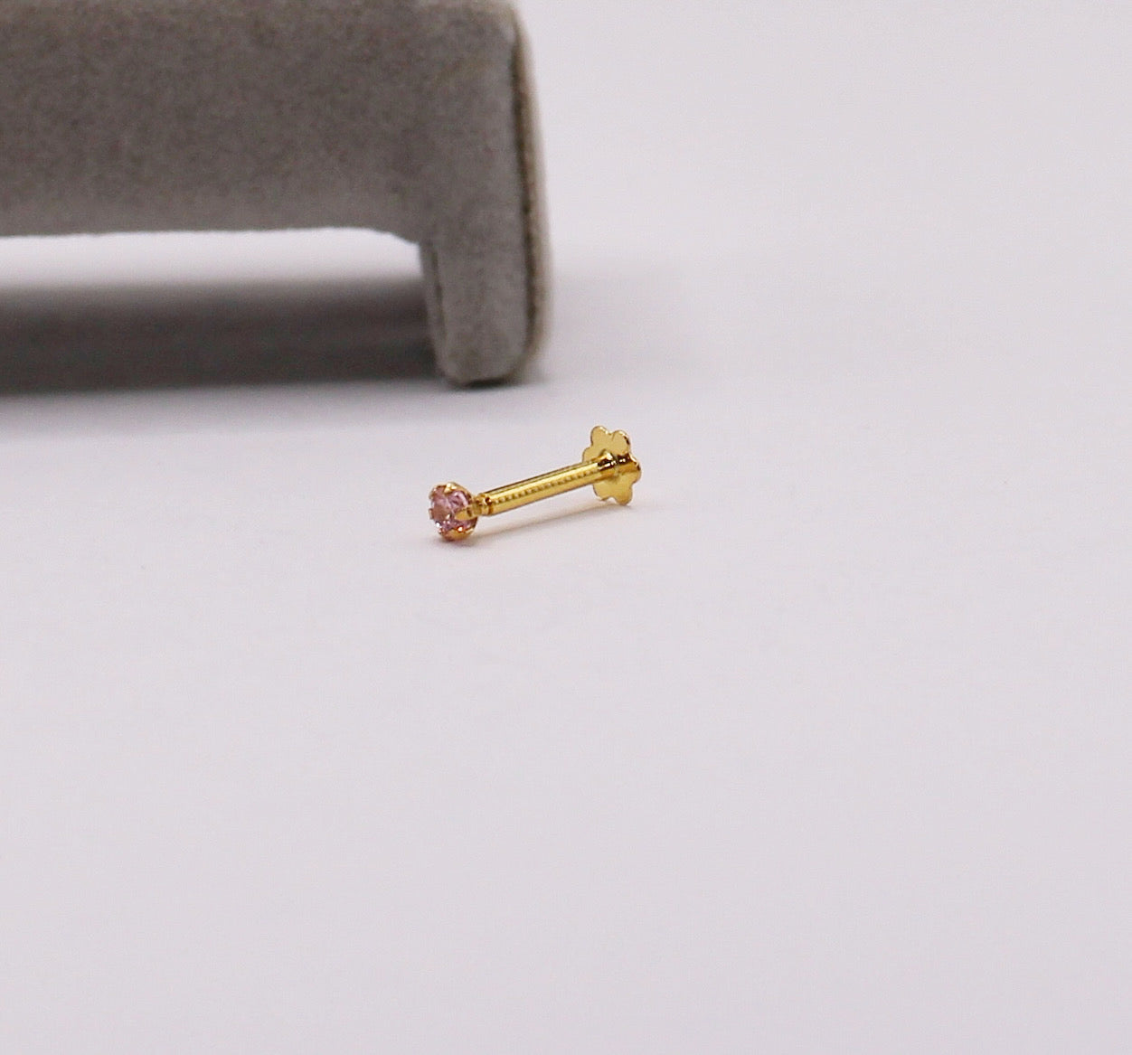 Tiny baby pink stud in solid 14carat gold suitable for nose and ears. Lovely for stacking and baby/toddler ears.