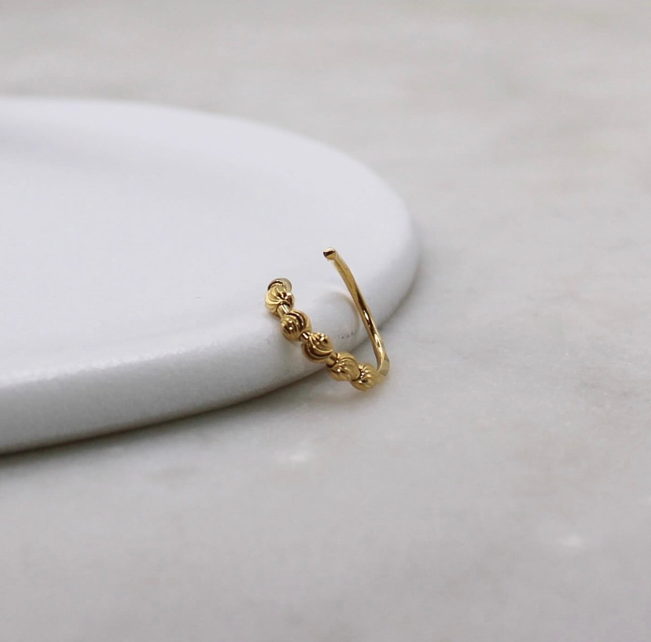 Solid thick diamond-cut hoop suitable for nose and ear piercings.