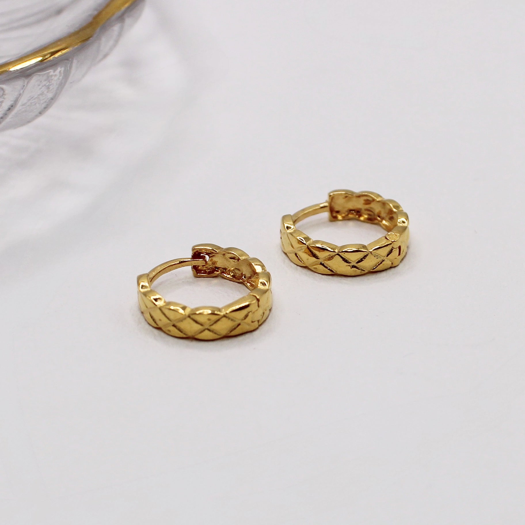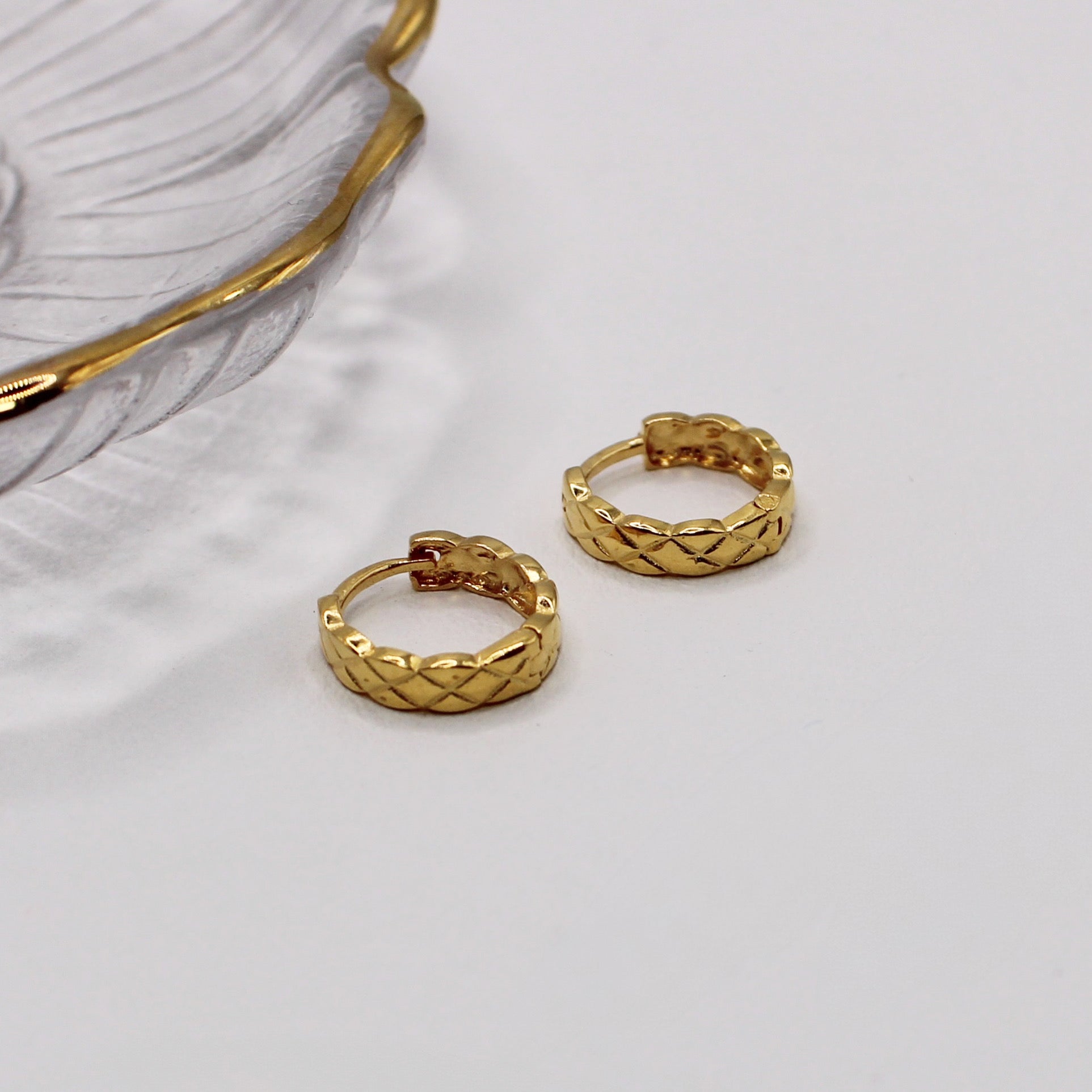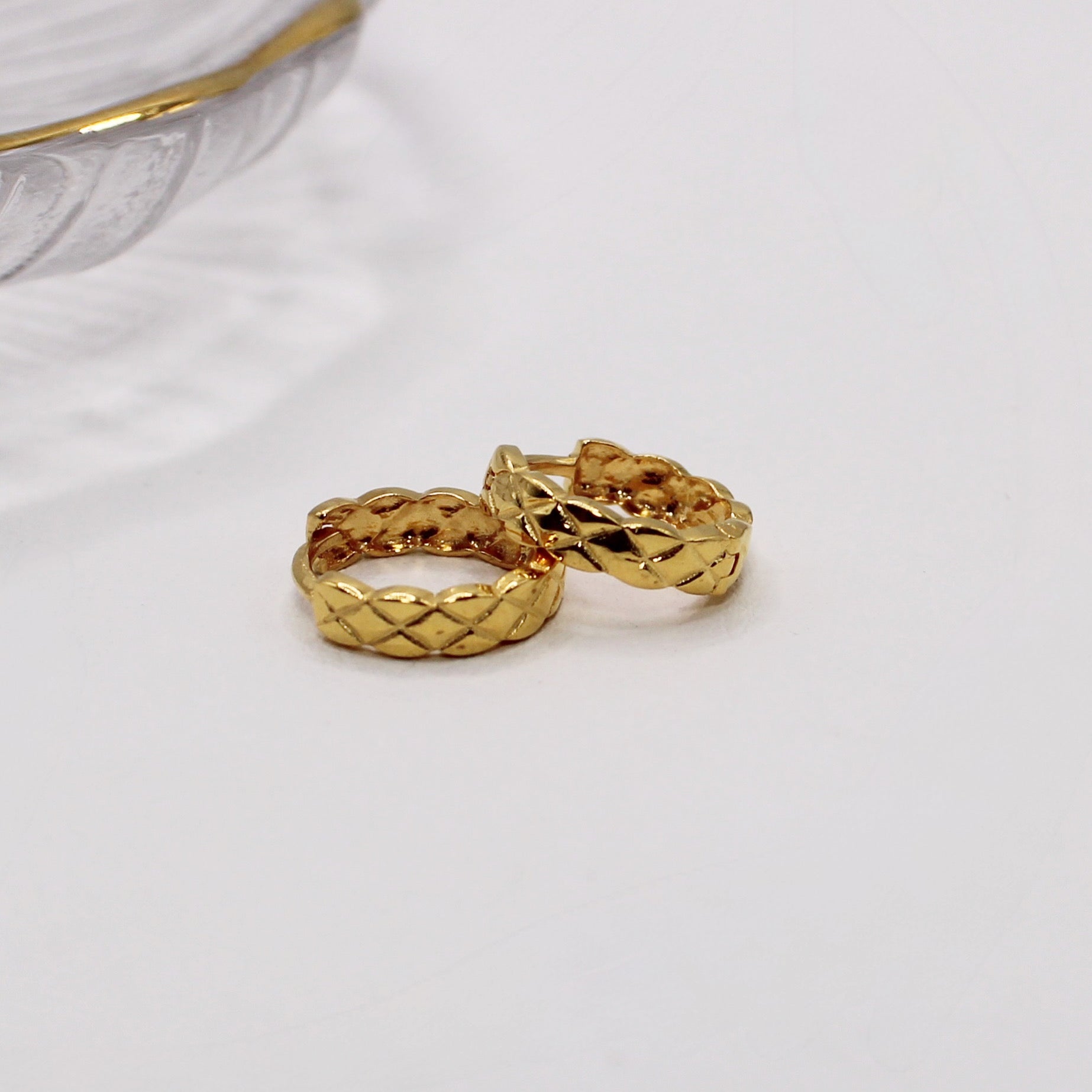 Solid 18carat hoops with crisscross detailing suitable for adults and children.