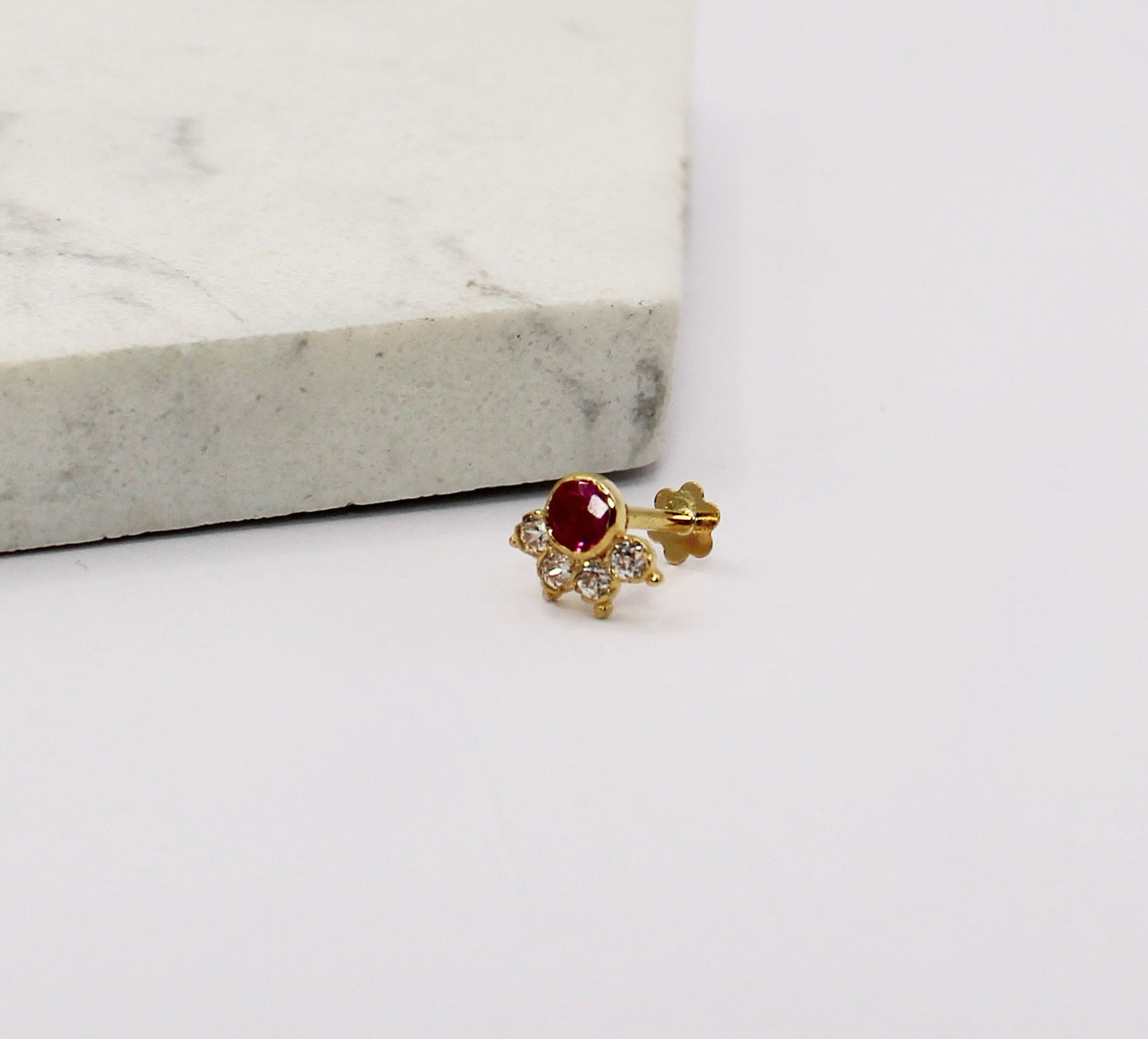 Solid 18carat stud suitable for nose and many ear piercings in pink and clear cubic zirconia stones