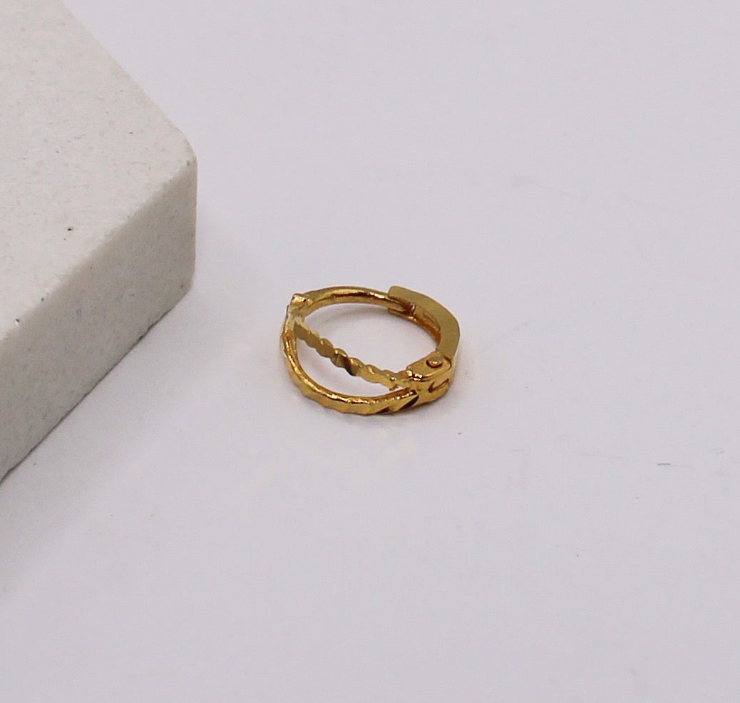 Single hoop with double-line in solid 18carat gold. This is suitable for nose and ear piercings.