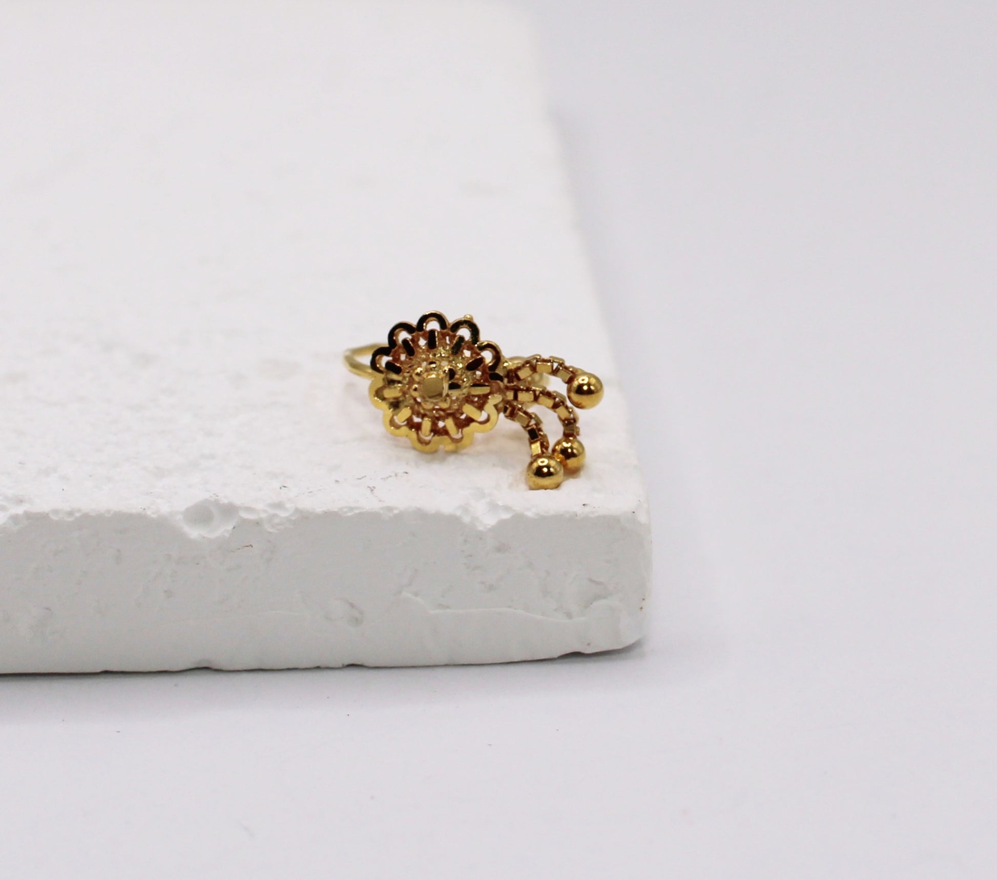 Solid 14carat flower hoop with 3-chain dangle suitable for nose and many ear piercings. These stunning pieces are carefully hand crafted.