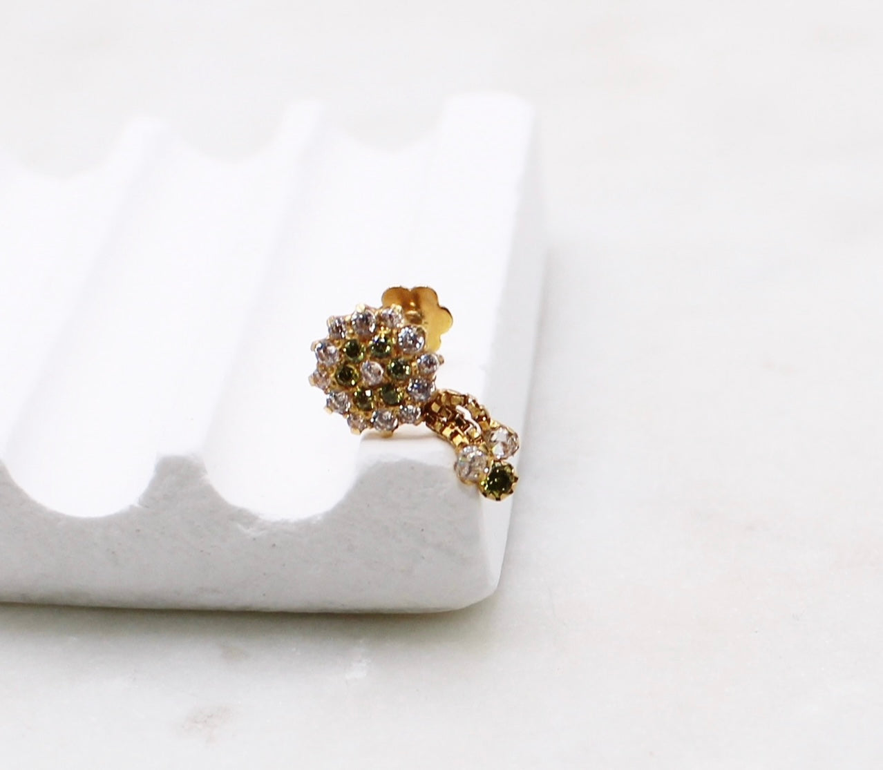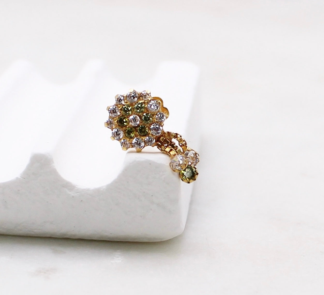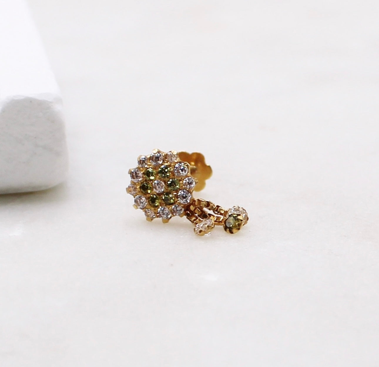 Beautiful green stud with dangles suitable for nose and ear piercings.