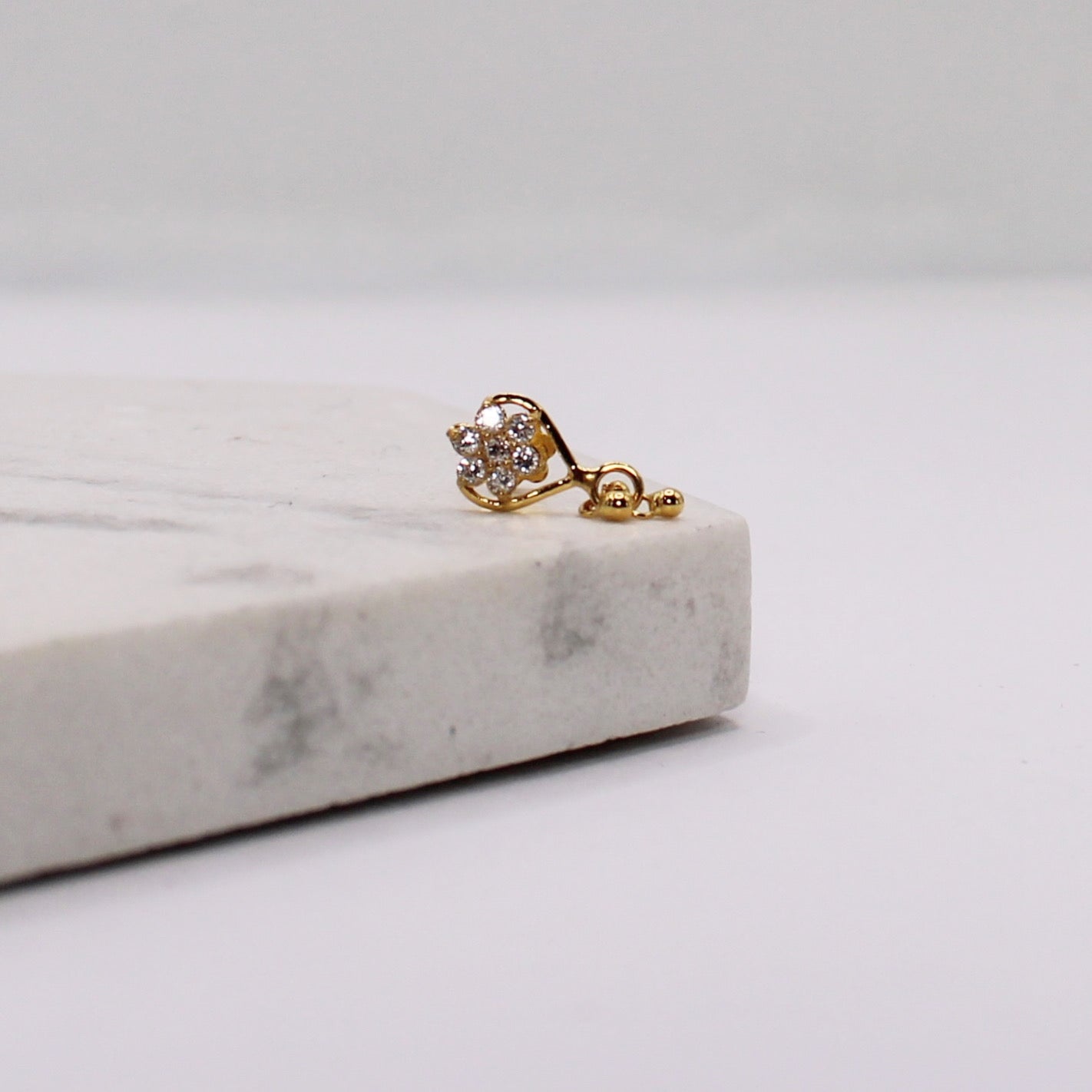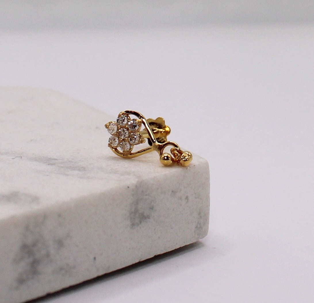 Solid 14carat heart flower dangly stud suitable for nose and ears.