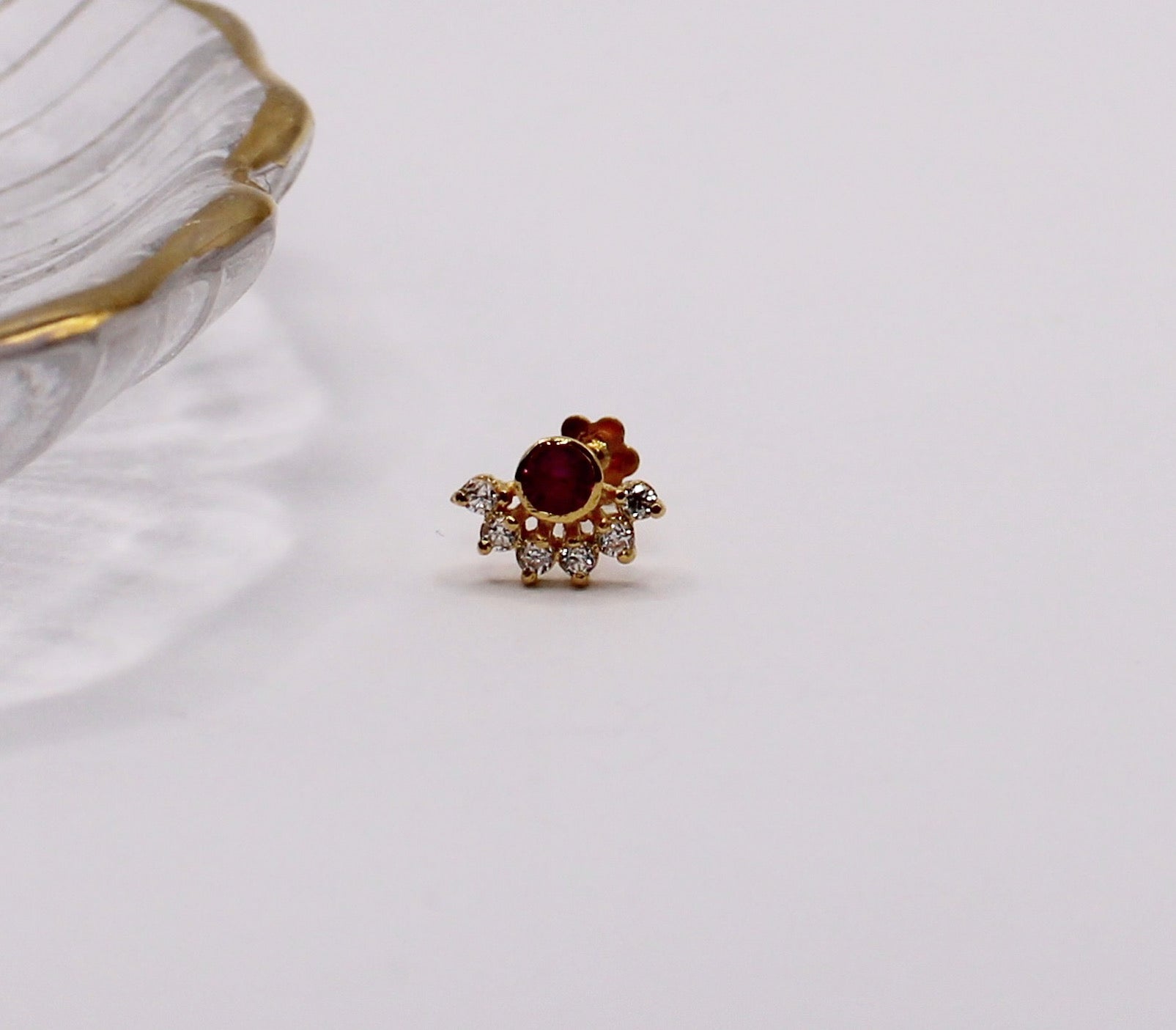 Solid 18carat stud suitable for nose and many ear piercings in clear and pink cubic zirconia stones.