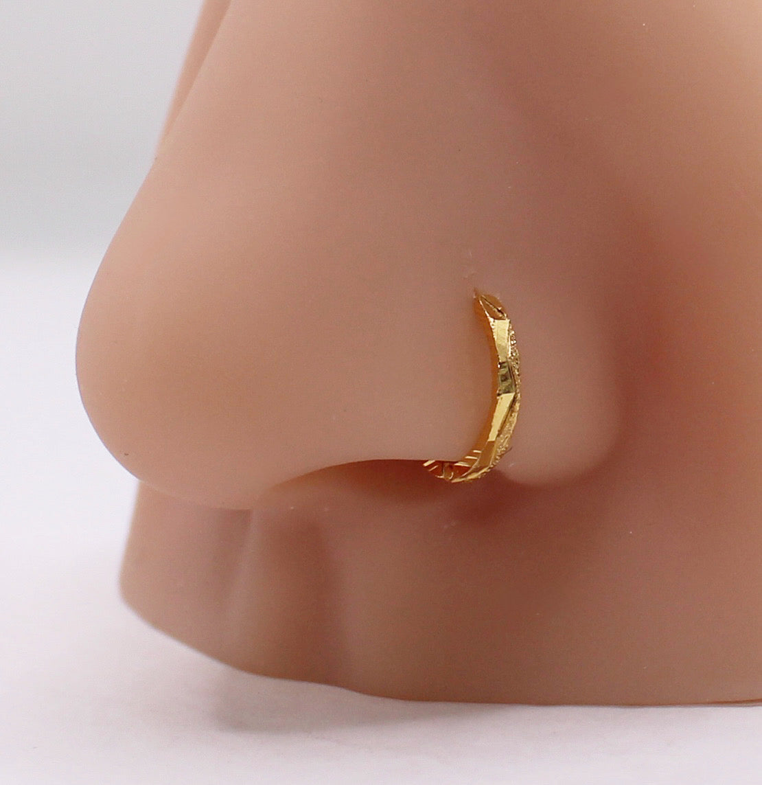Solid 18carat clip on hoop in thin, suitable for nose and many ear piercings.